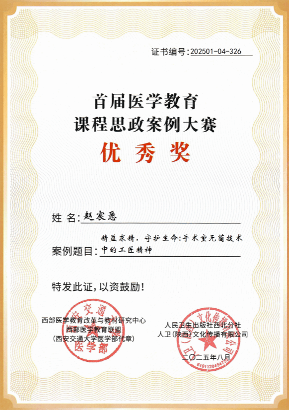 近日,由西部医学教育改革与教材研究中心、西部医学教育联盟主办,人民卫生出版社西北分社协办的“首届医学教育课程思政案例大赛”评审结果正式公布,我院获得优秀奖1项。