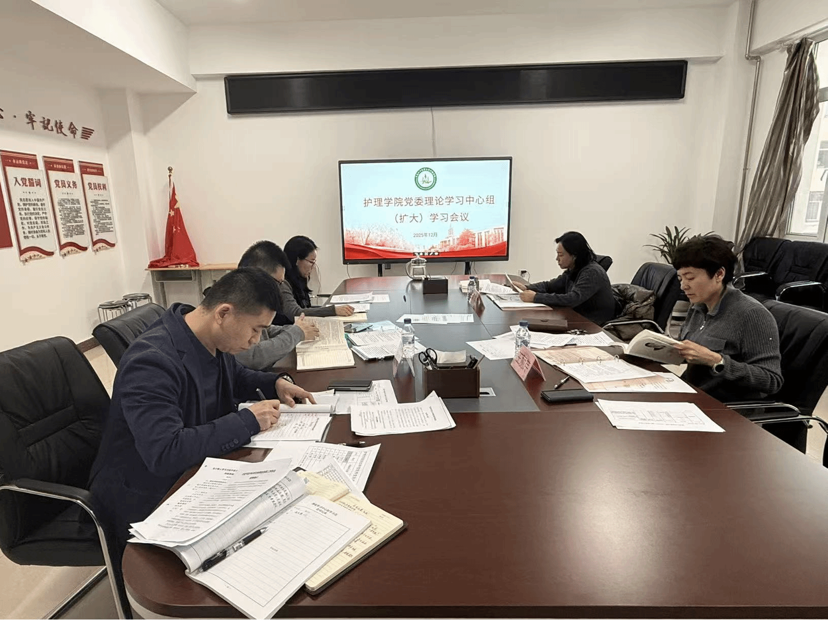 12月23日,黑龙江中医药大学护理学院党委理论学习中心组召开专题学习会议,就习近平总书记对全面依法治国工作作出的重要指示及中央全面依法治国工作会议精神等内容开展深入学习。院党委书记王丽芹主持会议并作中心发言,中心组成员结合工作实际进行交流研讨。