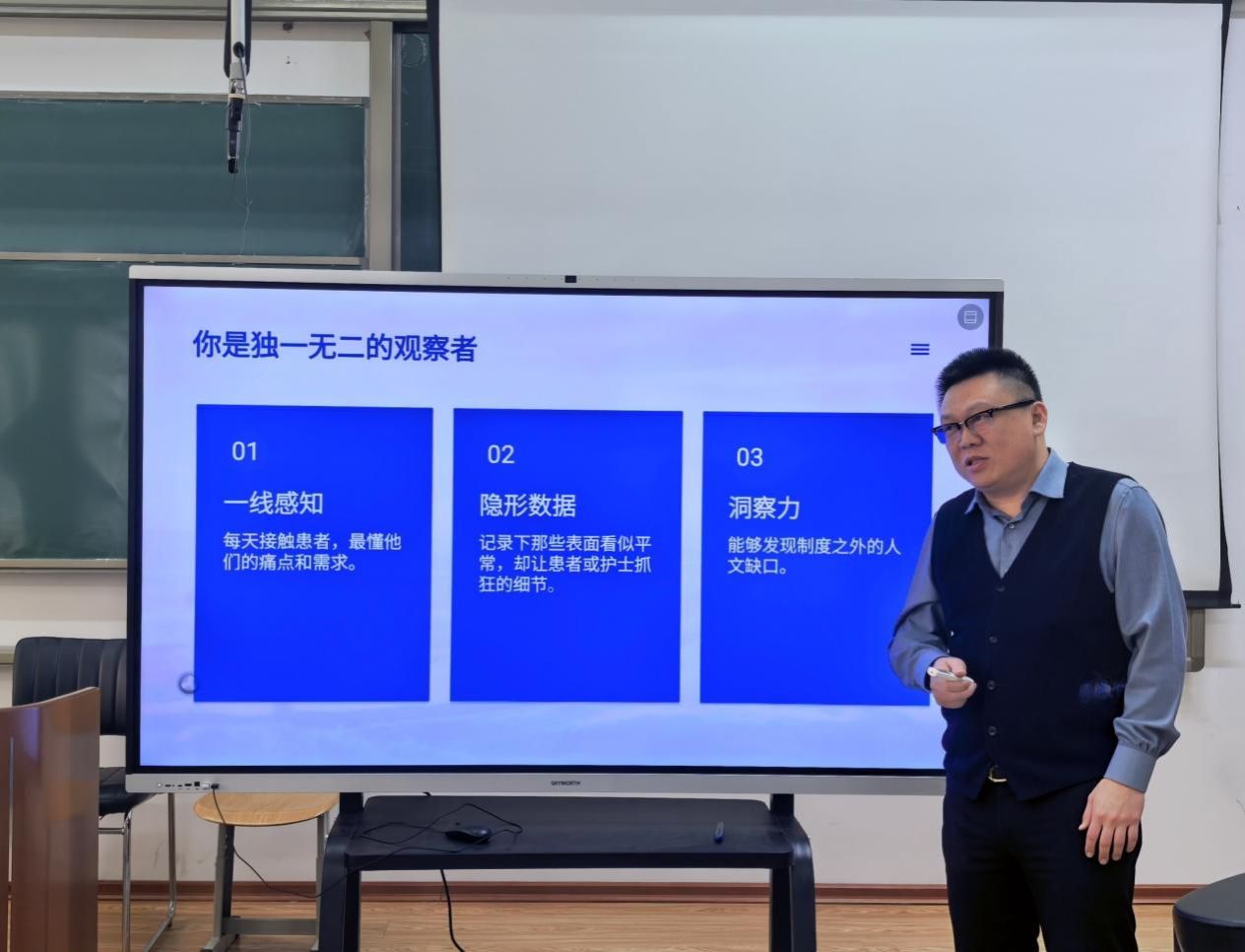 培训中,王海副院长深入阐述了创新创业对个人成长的重要性,建议项目聚焦养老健康与中医药两大方向,深入探讨了AI预警、适老化产品、智能艾灸及中医药文创等创新路径。同时,他提出项目成果应以高质量论文或成熟产品为目标,注重整合导师与基地资源,实现产教深度融合。培训最后部署了申报工作,要求同学们充分利用培训资源,积极联系导师,扎实推进项目准备。